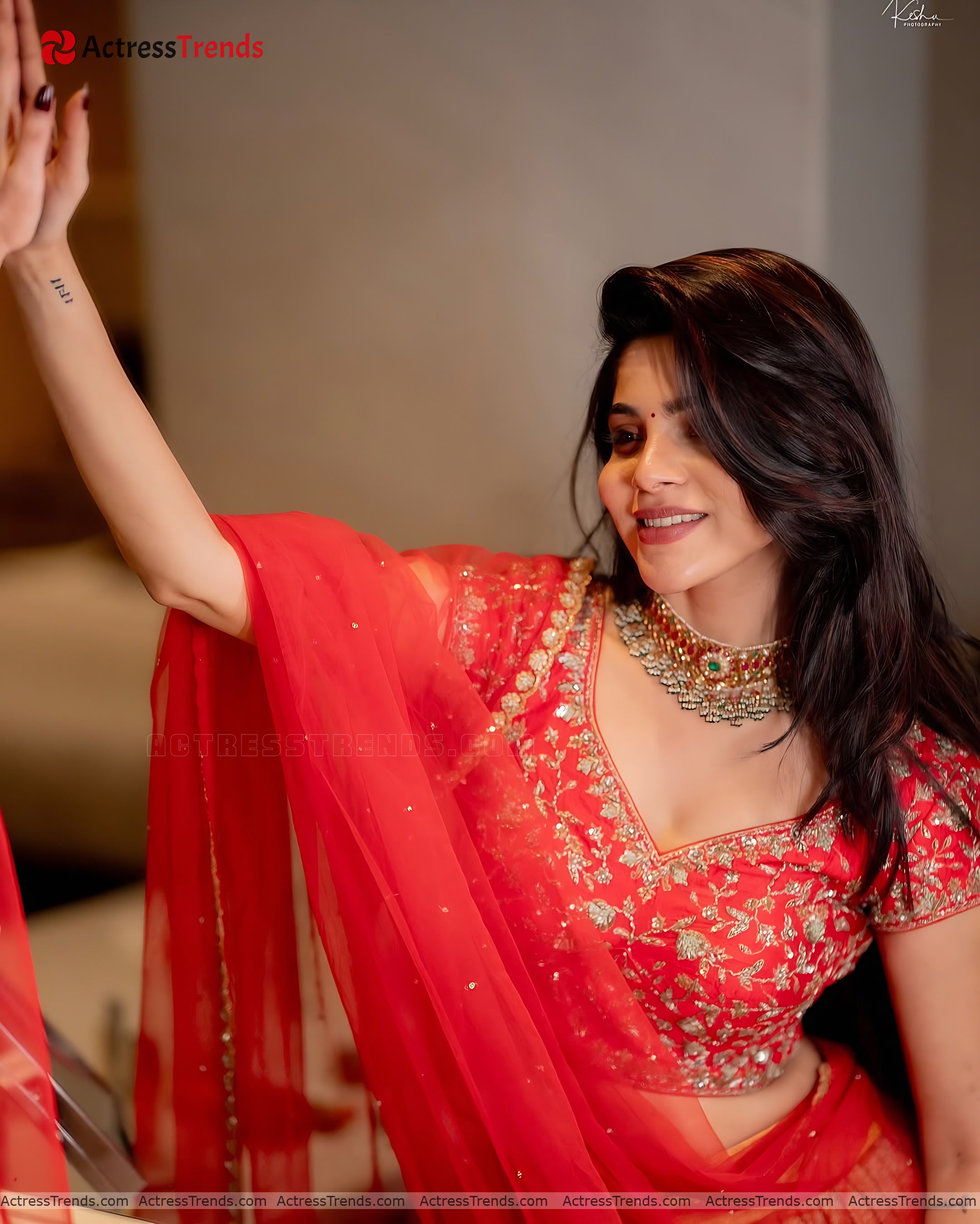 Divya Bharathi Red Dress Curvy Cleav Pose Stunning Photo