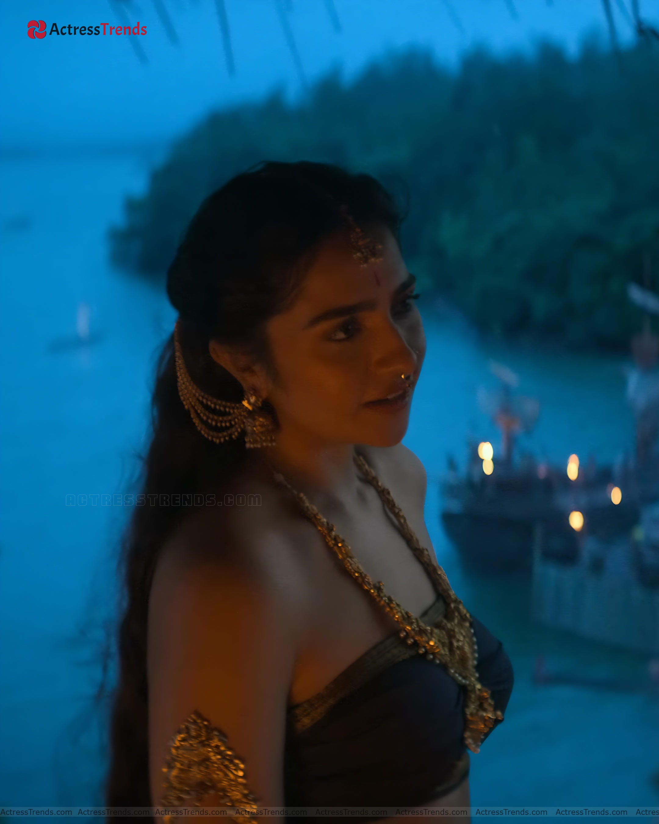 Rukmini Vasanth Green Saree Saree Photoshoot Celebrity Fashion Shoot Backless Blouse Style