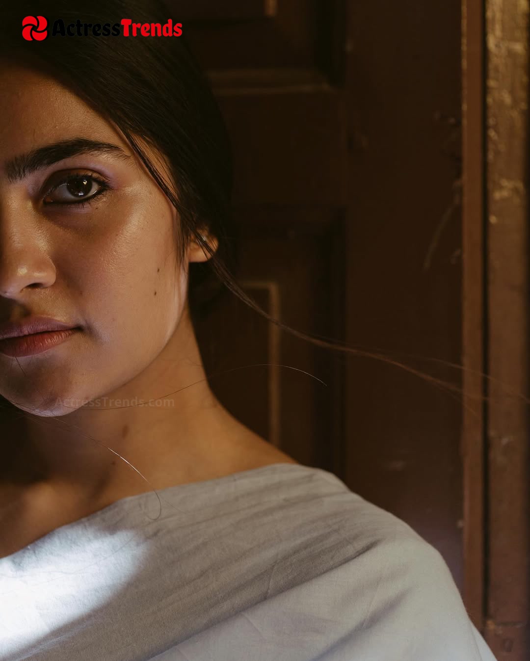 Rukmini Vasanth Grey Saree Smoky Eyes Celebrity Fashion Shoot Glamorous Actress
