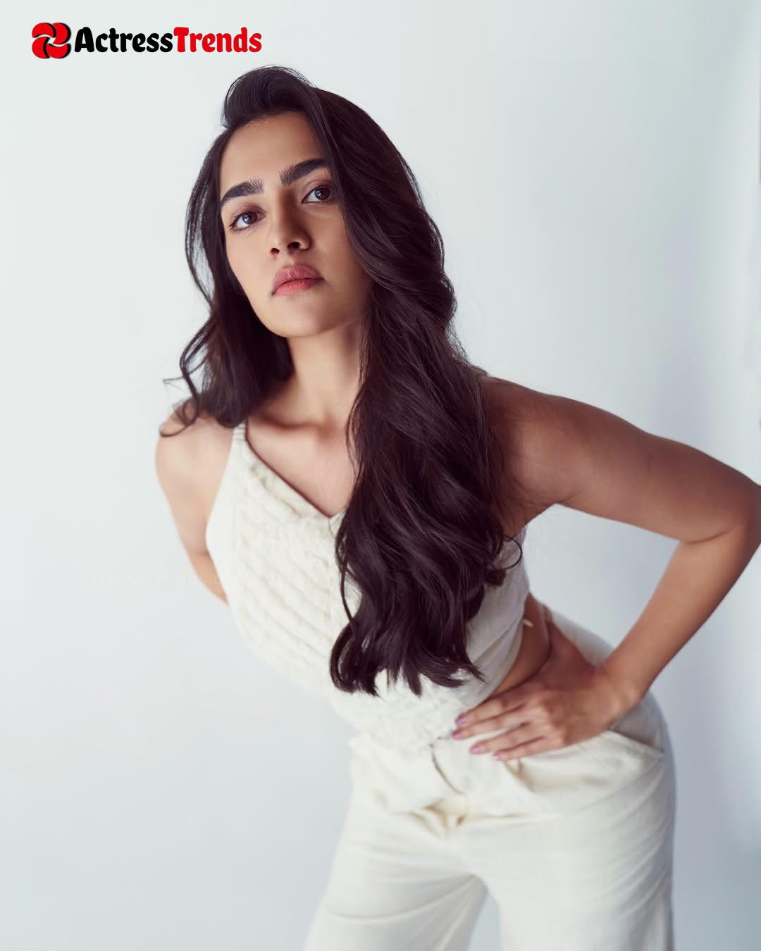 Rukmini Vasanth White Dress Sensual Portrait Cleav Pose